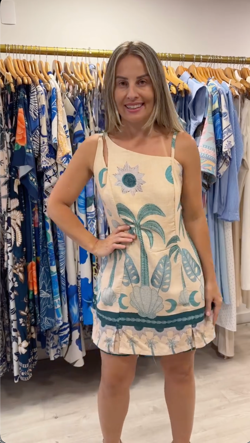 O Macaquinho Raquel Coqueiro Blue é a escolha perfeita para quem ama um visual leve, tropical e cheio de frescor. Com estampa inspirada em coqueiros e tons de azul que remetem ao céu e ao mar, ele transmite leveza, elegância e aquele clima de verão que combina com dias ensolarados, passeios e momentos especiais.